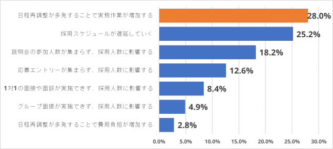 ■最大の懸念は、日程再調整の多発による実務作業の増加。