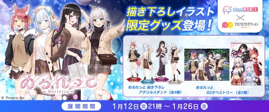 アンテポスト株式会社(本社:千葉県流山市 代表取締役社長:佐々木貴一)が運営するオンラインクレーンゲームアプリ『クラウドキャッチャー』にて、2024年1月12日よりバーチャルYouTuberグループ『めるれっと』の限定プライズを展開することをお知らせいたします。