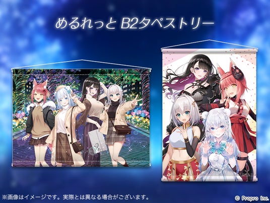 描き下ろしのビジュアルを使用したデザインとなっており、アクリルスタンド4種、タペストリー2種が提供されます。