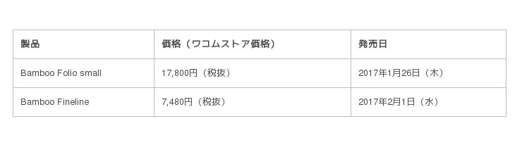 株式会社ワコムは、書いたメモやアイデアを、ボタンを押すだけでスマートフォンやタブレットに保存できるA5サイズのスマートパッド「Bamboo(R) Folio small」(2017年1月5日発表)を1月26日(木)より販売開始します。また、第3世代となる1.9mmの極細ペン先を採用したiOS専用スタイラスペン「Bamboo(R) Fineline(ブラック)」(2016年11月15日発表)を2月1日(水)に発売します。(※その他のカラーバリエーション、ホワイト・ブルー・ライトブルーは2017年春販売開始予定)