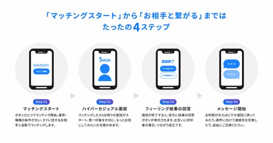 「ENCOUNT」とはサービス名の通り、あえて “事前情報なしの思いがけない出会い” を実現するハイパーカジュアル面談プラットフォームです。