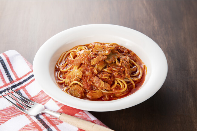 「イルキャンティ」でNo.1人気のメニューを再現したスパゲティです。トマトソースの中に魚介の旨みと辛味を組み合わせ、オリーブオイルやニンニクを効かせてお店の味を忠実に再現。ソースをたっぷり使用し、本品の特徴であるスープパスタ感を表現しました。