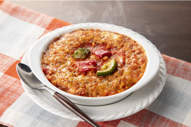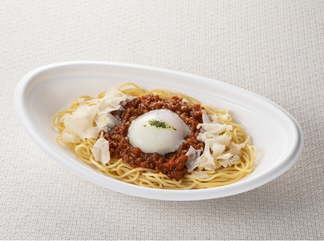 ミートソースが、前回フェアでの好評を受けて再登場いたします。イタリアンの調理方法“ソフリット”により香味野菜をじっくり炒め、ひき肉、赤ワインをいれて煮込むことで、野菜の旨みを増幅させたソースが特徴。薄削りしたチーズと半熟玉子をトッピングしています。