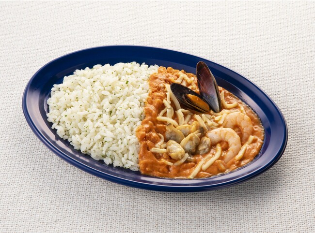 ソースはトマトソースにホワイトソース、牛乳、チキンブイヨンで濃厚な仕立てにし、お店の味を再現しました。具材はムール貝、海老、アサリの海鮮を使用し、トッピングにはチーズを加え、旨みとコクが広がる味わいが楽しめます。