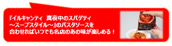 また、創業当初から長年愛され続けている一番人気のメニュー『真夜中のスパゲティ』を忠実に再現した常温パスタソースをイトーヨーカドー・イルキャンティで新発売します。本商品を『イルキャンティ スパゲッティ(乾麺)』と合わせることで、いつでも名店のあの味がご自宅でお楽しみいただけます。そのほか、デリカでも前回好評だった『イルキャンティ監修 真夜中のスパゲティ』や『イルキャンティ監修 イタリアンピラフ』等が再登場いたします。
