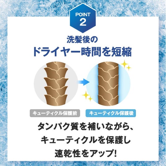 タンパク質を補いながら、キューティクルを保護し、速乾性をアップします。
