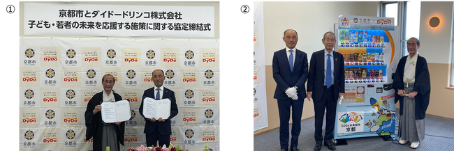 この協定は、ダイドードリンコと京都市が連携・協力して、子ども・若者の未来を応援するために締結されたもので、その取り組みの一環として、この度「京都市子ども・若者未来応援自動販売機」(以下、本自販機)を株式会社増田医科器械(本社:京都市伏見区)に設置いたしました。