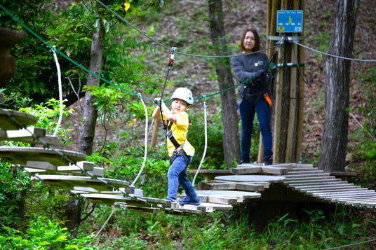 フランス発祥の自然共生型アウトドアパーク。日本では2006年に山梨県でのオープンを皮切りに、2024年3月現在、全国 42箇所に展開中。自然の立木の地上2~15mの位置に設置されたプラットフォームと呼ばれる足場に登り、そこから別の木に空中散歩を楽しみながら移動していき、地上へはジップスライドで一気に滑り降りるという、スリルと爽快感、そして達成感も味わえる子どもから大人まで楽しめる新次元のアドベンチャースポーツです。ヨーロッパでは、スキー場のグリーンシーズンのプログラム、各種グループ研修施設、キャンプ場の付帯施設または、地域住民・学校単位で利用できる自然共生型施設として評価されています。