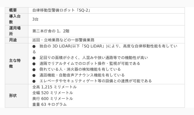 - 自律移動型警備ロボット「SQ-2」について