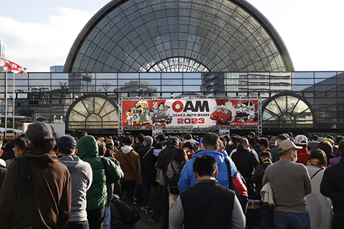 2023年度の来場者は20万5,462人。毎年20万人を超す来場者でにぎわう関西最大級のイベントです。インテックス大阪の1号館から6A、6B号館まで、合計約50,000平方メートル の展示面積は、国内モーターショーの中でも指折りの規模です。