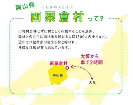 岡山県西粟倉村HP:http://www.vill.nishiawakura.okayama.jp/