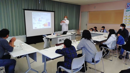 株式会社アミノアップでは、小学生から大学生まで様々な年代に向けた職業体験の場を提供しています。学校への出張授業を始め、児童会館での体験会、小学生向けの職業体験イベントの他にも高校生向けの職業体験イベント、修学旅行生の受け入れ、インターンシップの受け入れ等、年間を通じてCO2削減に関する活動や、周辺環境に配慮した様々な仕組みと一緒に学びの場を提供しています。