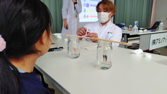 「いろんな色が混じっていることがわかった」、「花火みたいでキレイだった」と、気づきが多かった子どもたちが大多数でした。また初めて株式会社アミノアップを知ったという子どもたちも多く、会社を知ってもらえる良い機会になりました。