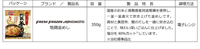 「地鶏釜めし」は2021年秋季に発売した製品で、国産のお米と徳島県産阿波尾鶏を使用し、一釜一釜直火で炊き上げた釜めしです。このたび、紙を一部使用した袋パッケージに変更することで、竹皮モチーフのパッケージデザインを手触りからも感じていただき、“専門店品質の和ごはん”という製品コンセプトをさらに強化させます。