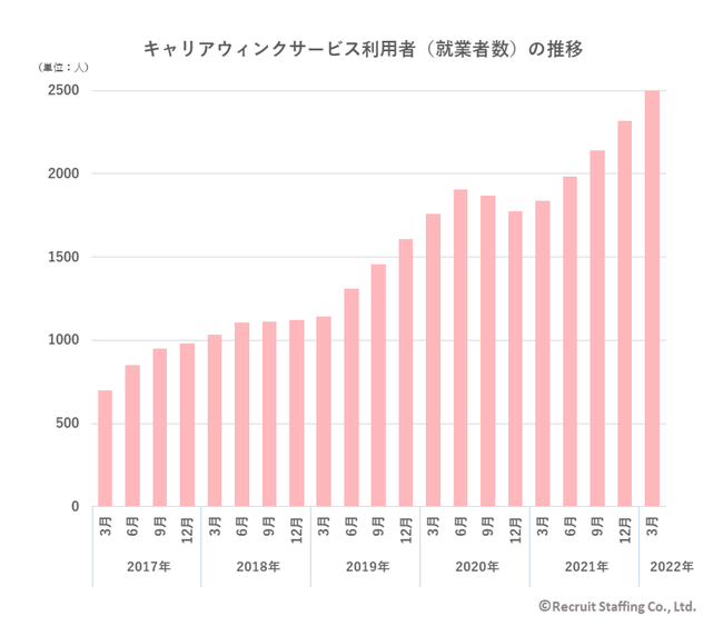 また、サービス利用者の約80%の方が事務職経験がない中、事務職としてのキャリアをスタートしており、近年その就業者数は増加傾向にあります。