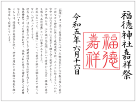 店舗にて購入された方に、福徳神社嘉祥祭御朱印をプレゼント。