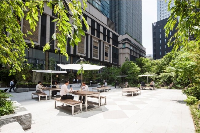 COREDO室町内にある神社と一体になった福徳の森に畳エリアが出現。