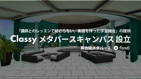 世界196カ国で200万人以上のユーザーを抱え、海外ユーザー比率98%の英会話メタバースアプリ『fondi』を提供する株式会社fondi(本社:東京都渋谷区、代表取締役CEO:野原樹斗)は、初心者向けの英会話サービスを提供するClassy英会話スクール(本社:大阪府大阪市、代表取締役CEO:森田紘司)の、メタバースキャンパスを設立し、講師によるレッスンで学んだ後に、英会話の機会を提供することで、より実践的な英会話スキルの学習サイクルを実現します。