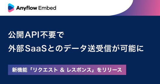 Anyflow株式会社(本社:東京都千代田区、代表取締役CEO:坂本 蓮、以下Anyflow)は、SaaS事業者向けのAPI連携プラットフォーム「Anyflow Embed」の新機能、「リクエスト&レスポンス」をリリースします。本機能により、公開APIを持たないSaaS事業者も、外部SaaS製品とのデータの送受信を簡単に実現できるようになります。