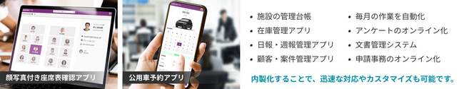 ローコード特有の制限はありますが、これらのアプリのほか、会議室予約アプリや、受付システムなど、職員の皆様のアイデアと弊社のナレッジにより業務効率化の可能性は無限大です。