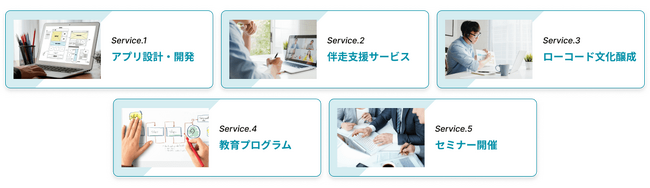 アプリ設計・開発・内製化支援・ローコード文化醸成・セミナー開催などを揃えさせていたただいておりますが、様々なサポートが可能です。まずは、ご相談をお待ちしております。