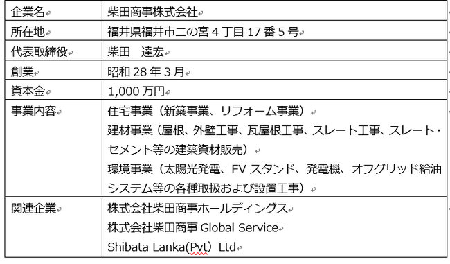 柴田商事は、1953年に福井地震からの復興のタイミングで瓦屋根の専門工事業者として創業しました。その後も瓦だけにとらわれず、様々な屋根材から外壁材、内装材など取扱商品を増やし、施工技術を磨き、職人を育成しながら屋根・外壁工事の施工、セメントや地盤改良材などの販売を地元福井中心に行ってきました。近年では、太陽光発電システムの販売施工、不動産事業にも取り組んでおり、特に環境、省エネ商材の普及に力を入れています。これからも、既存事業だけにとらわれず、時代の流れと共に様々な事業にチャレンジし、「縁のある全ての人の、幸せを目指して」お客様のお役立ち、社会貢献に取り組んでいきます。