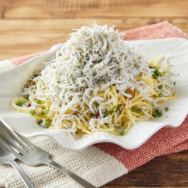 当店おすすめは、インパクト大!!山盛り“しらすたっぷりペペロンチーノ”