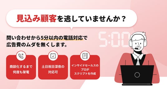 ウェブサイトや電話からのお問い合わせに対して、5分以内の電話対応を行うことで広告費のムダを無くすサービスです。The Model(ザ・モデル)におけるインサイドセールスに特化しています。