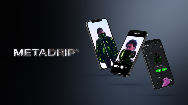 METADRIP は、3DCG で生成されたデジタルファッションをスマートフォンのカメラを通じて、AR( 拡張現実 ) で着用できる iOS アプリケーションです。NFTとして発行されているデジタルファッションアイテムであれば、ホルダーのみが着用することができ、アプリ内のデジタルワードローブで管理し、NFT のマーケットプレイスで売買も可能となる計画です。「METADRIP」はファッションNFTに新たな実用性のレイヤーを加え、アプリを通じてARでの着用を可能にすることで、あらゆるサービスに接続して参ります。