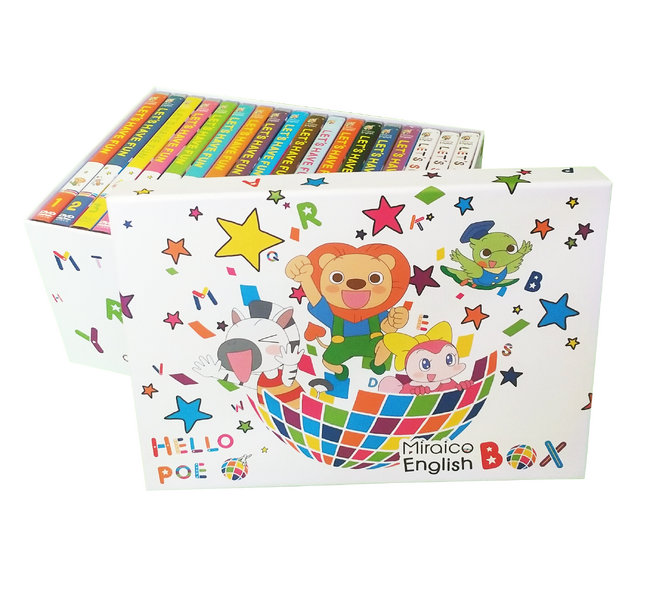 ミライコの象徴ともいえるBOXをリニューアル。新しいデザインは、ミライコカラーの地球からハローポーをはじめとするミライコのキャラクター達が弾けるように飛び出てくる楽しさから英語=楽しいと想起させることをコンセプトとしています。ミライコイングリッシュをきっかけに子ども達が英語を好きになってほしいという想いが込められています。教材一式全てBOXに収まるから収納場所を選ばずスッキリ・コンパクトに収まるのが親御様の支持を得ています。