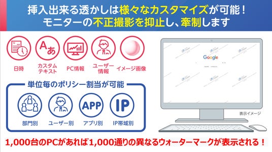 ・PC画面にユーザー情報を含んだウォーターマークを自動表示