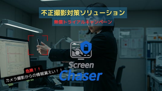 PCのスマホカメラ撮影によって流出する内部不正への対策ソリューション「ScreenChaser」についてSaaS版提供開始を記念して1社30ライセンスまで無償利用できるキャンペーンを開始。