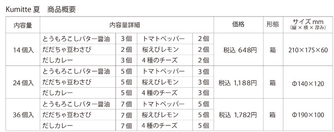 2021年に発売した「Kumitte夏」の味を、お客様の声をもとにリニューアルしました。新たに加わったのが和風の「だしカレー」です。是非、お楽しみください。