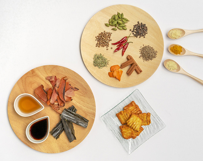 11種類のスパイスに、醤油と昆布とかつおを組み合わせた和風カレー味です。辛味は控えめにして、ほんのり甘めの食べやすい味に仕上げています。