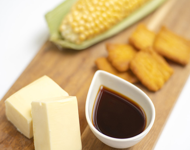北海道産スイートコーンパウダーを生地の中に練り込み、仕上げの味付けにも使用しているのでとうもろこしの甘みを長く楽しむことができます。バターの香りと醤油の塩気が効いた甘じょっぱい味です。
