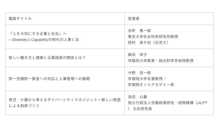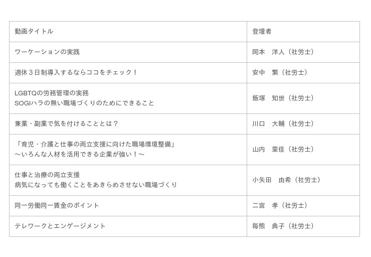 その中で、「働き方改革」をテーマとした令和4年3月4日(金)13:00から開催する『働き方の革新を通じた「人を大切にする企業」づくり~社労士と共創する働きがいのある職場と未来の社会~』に向けて、関連講義動画の配信を開始いたしました。