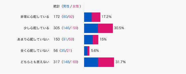 「非常に心配している」または「少し心配している」と答えた人が約47.7%と、プライバシーに対する懸念が高くなっています。これは、生成AIに関する社会的な議論やメディアの情報が影響していると思われます。