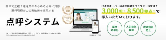 ■概要この度、テレニシ株式会社(本社:大阪府大阪市中央区城見一丁目2番27号、代表取締役:高島 謙一)が開発する貨物・旅客事業者向け総合クラウド点呼システム「IT点呼キーパー」が、国土交通省が実施する「事故防止対策支援推進事業の過労運転防止のための先進的な取り組み」に対する支援における「ITを活用した遠隔地における点呼機器」および「遠隔点呼機器」の対象機器として、2025年度認定を受けました。