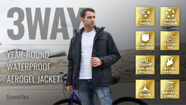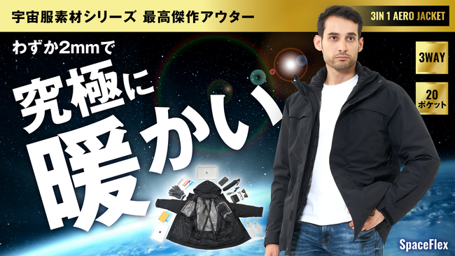 DADA株式会社(本社:東京都渋谷区、代表取締役:土橋竜也、以下 DADA)が開発販売する、宇宙服にも使われている厚さ2mmで-196℃を断熱する素材「エアロゲル」を活用した”超断熱”3IN1ジャケット「SPACE FLEX(スペースフレックス)」を日本にて独占開発し、2023年12月15日(金)まで応援購入サービス「Makuake」で先行予約販売を実施しています。