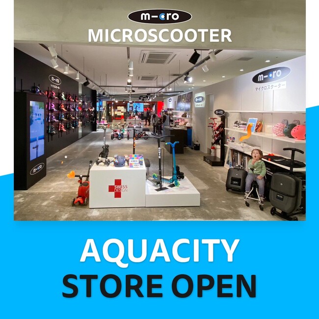 マイクロスクータージャパン株式会社(東京都港区)はアクアシティお台場3階に日本最大級のマイクロスクーター体験型店舗をリニューアルオープンしました。4月1日から5月31日まで子ども用から大人用までキックボードの試乗はもちろんプレゼントキャンペーンも実施致します。
