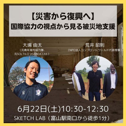 アフリカ農村部で生活と権利の保障を目指すNPO法人コンフロントワールド(東京都港区、代表理事:荒井昭則)は、富山市にあるコワーキングスペース「Sketch Lab(スケッチラボ)」でのイベント「【災害から復興へ】国際協力の視点から見る被災地支援」に登壇します。