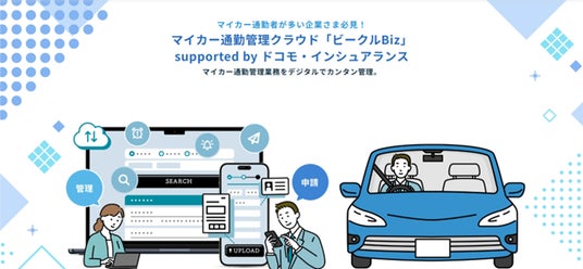 なお、新プラン追加に伴いサービス名を「マイカー通勤管理クラウド」supported by ドコモ・インシュアランスからマイカー通勤管理クラウド「ビークルBiz」supported by ドコモ・インシュアランスに変更しました。