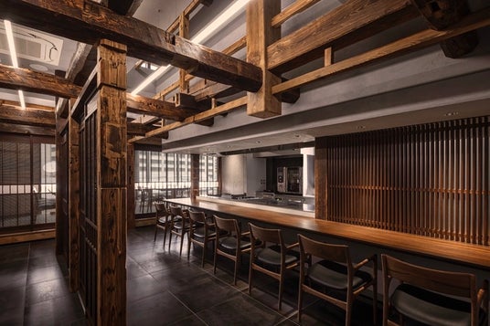 銀座『和牛想榮』:古民家で使われていた柱・梁を店舗内装に取り入れた事例