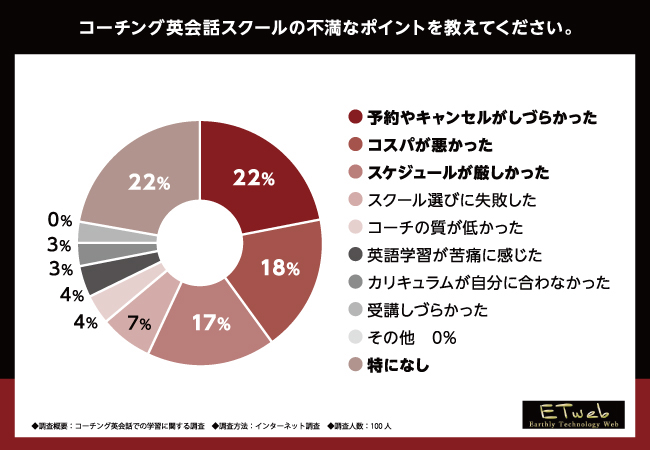 次に、「コーチング英会話スクールの不満なポイントを教えてください。」と質問したところ、