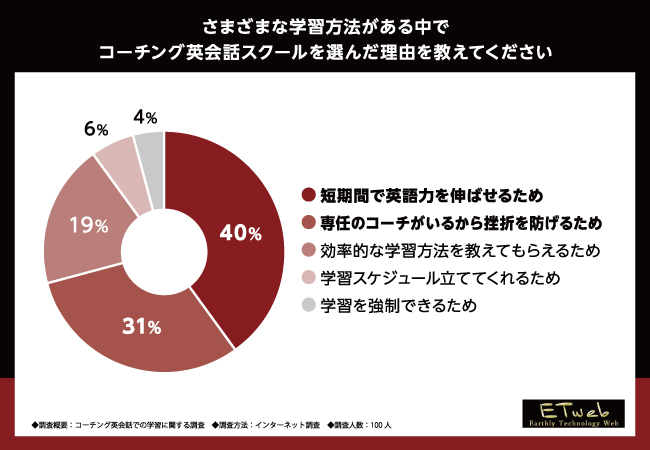 コーチング英会話スクールを選んだ理由は「短期間で英語力を伸ばせるため」が最多