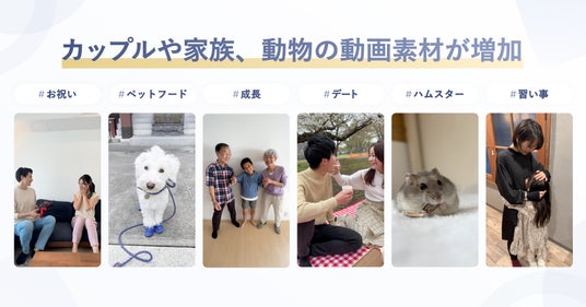 0~91歳の男女の動画素材は堅調に増加。カップルや家族、動物の動画素材も大幅に増加!
