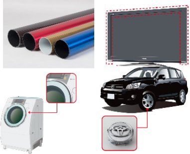 リビアンへの製品供給開始を機に、自動車外装等に用いる金属調加飾フィルム事業は、電波透過性や光透過性という特性を活かし、新たな自動車開発への貢献を目指す。