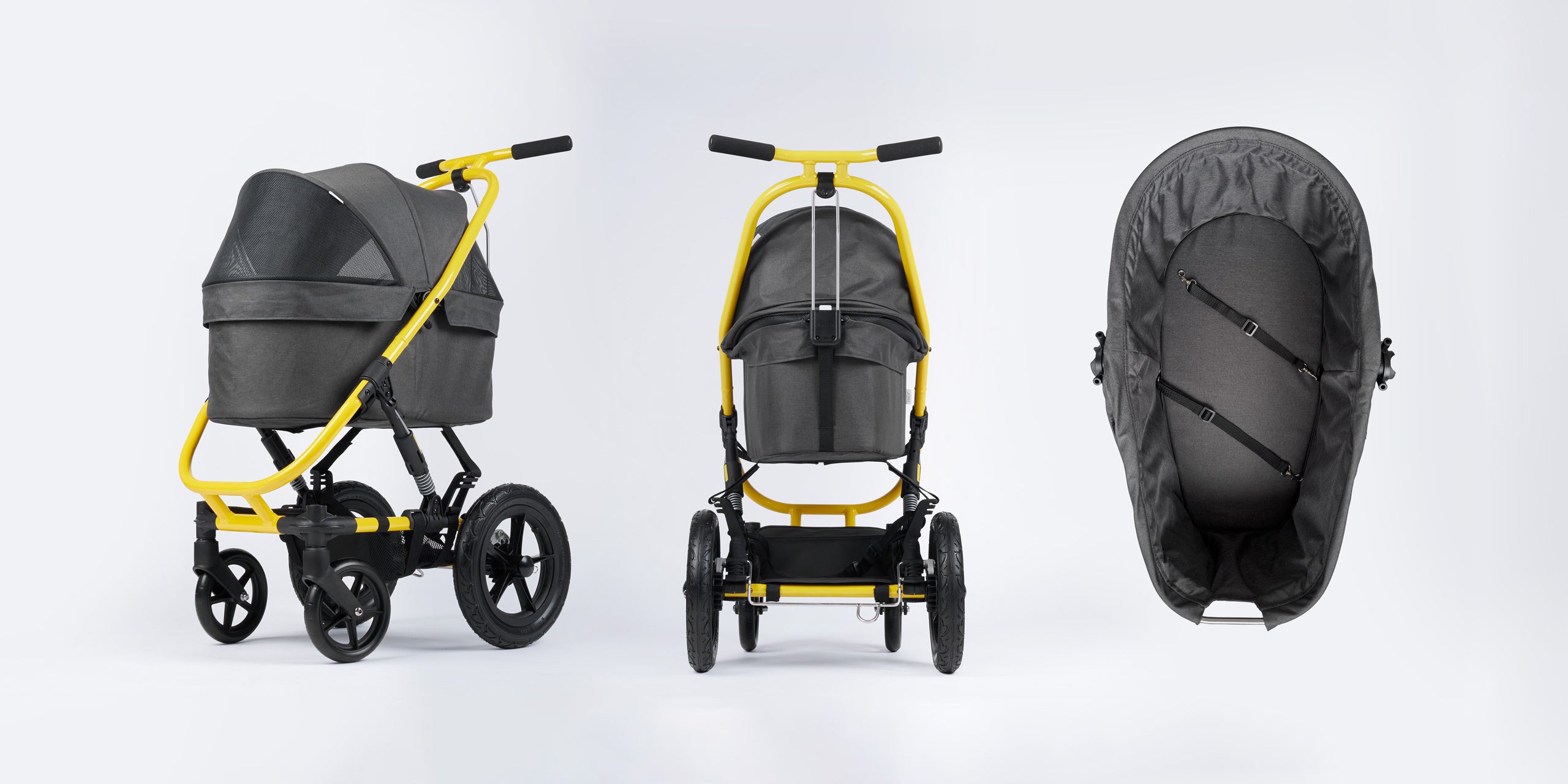キュリオベビーカーに取替え可能な新ユニット。子育て後もペットカートや荷物用マルチカートとして活用可能。デザイン性と循環型社会への貢献を両立。