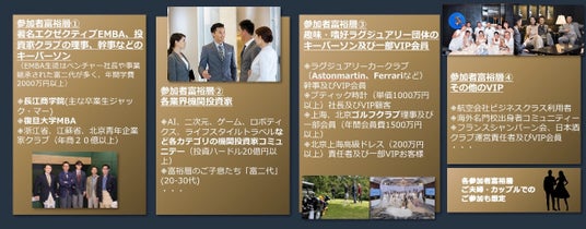 参加者 100名 程度《EMBA、投資家グループ、ゴルフ&ワインなど高級嗜好