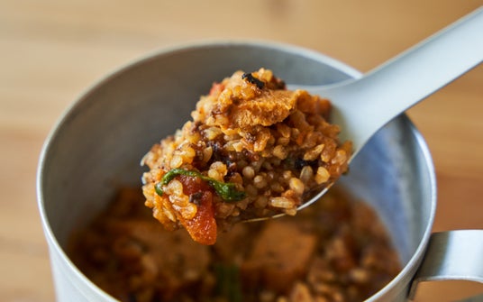 作った料理をただ乾燥させただけでなく、乾燥も調理の一つと捉えるからこそ出来上がる今までになかった「これが食べたい」と思える料理を、ゼロから考えて作っています。試作期間は2年超え。素材ごとに乾燥方法を変えたり、調味料の配合タイミングを乾燥を見越して調整するなど、細部まで徹底したこだわりっぷり。製造方法は特許も取得しました。「これを食べるために山に登りたい。そう思えるようなレシピをつくりたい。」シェフの言葉です。